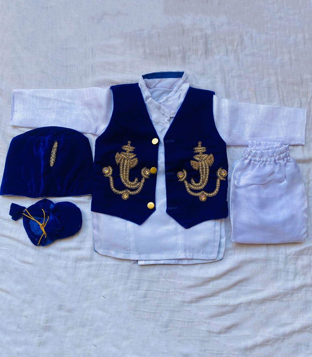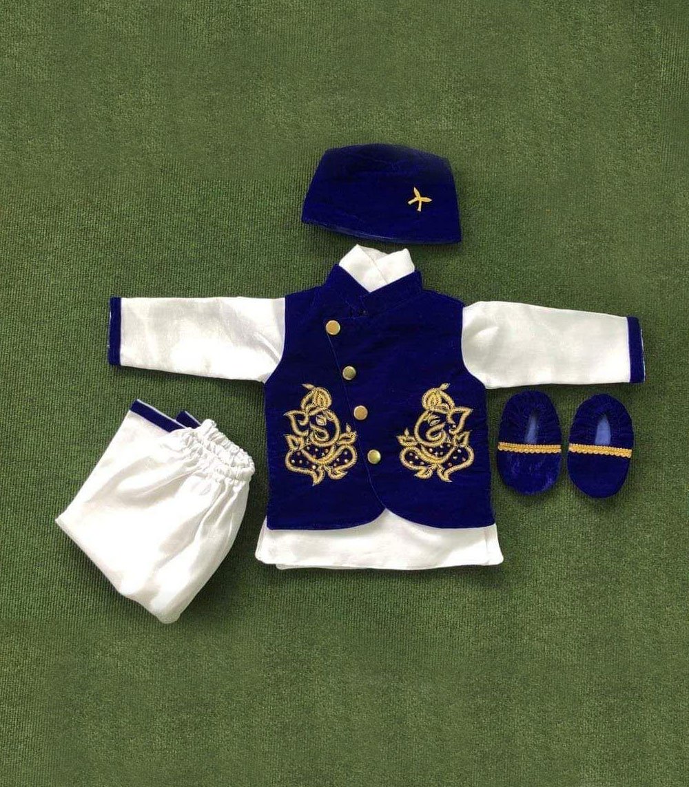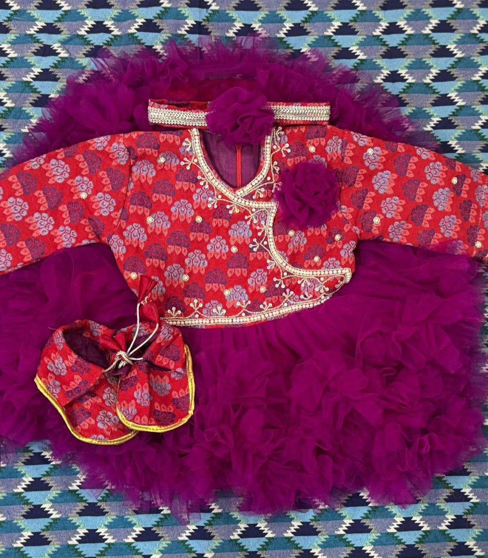 A traditional baby outfit made from rich velvet, ideal for Pasni ceremonies.